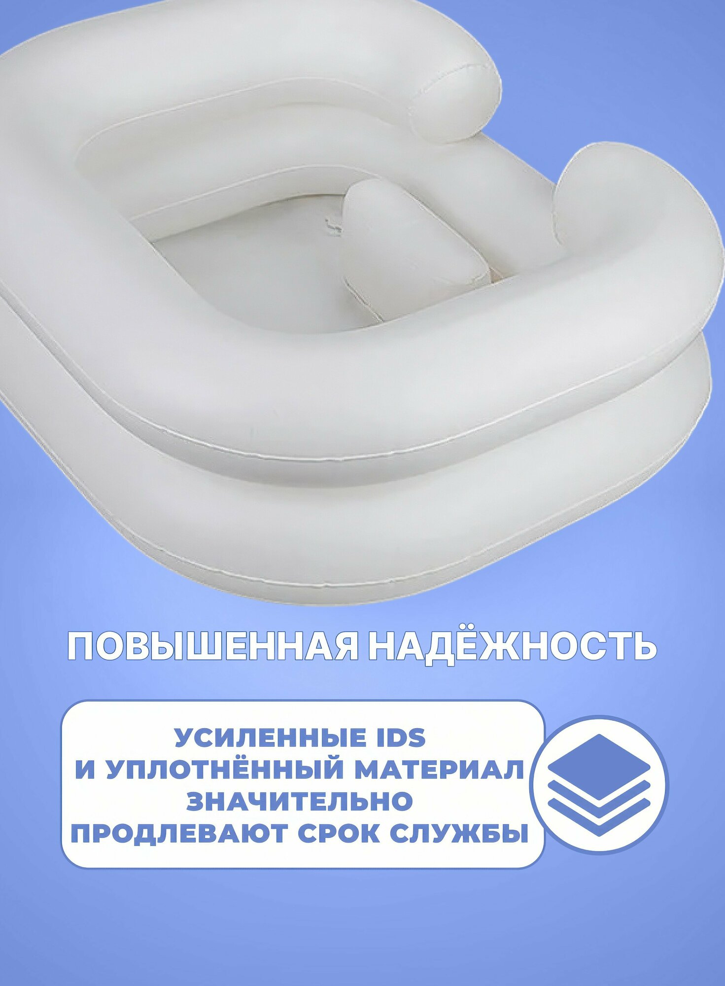 Надувная ванна для мытья головы лежачих больных/ ванночка для купания пожилых людей и инвалидов на кровати/ MedicoPRO