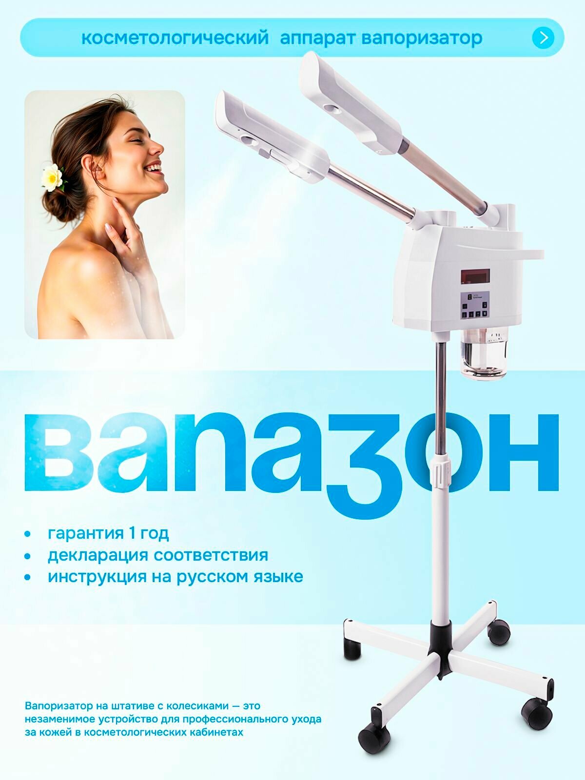 Купить Вапоризатор, вапазон на стойке косметологический горячий холодный пар с доставкой по всей России. Вапоризатор, вапазон на стойке косметологический горячий холодный пар: сравнение цен, характеристики, фото, актуальное наличие и цены.