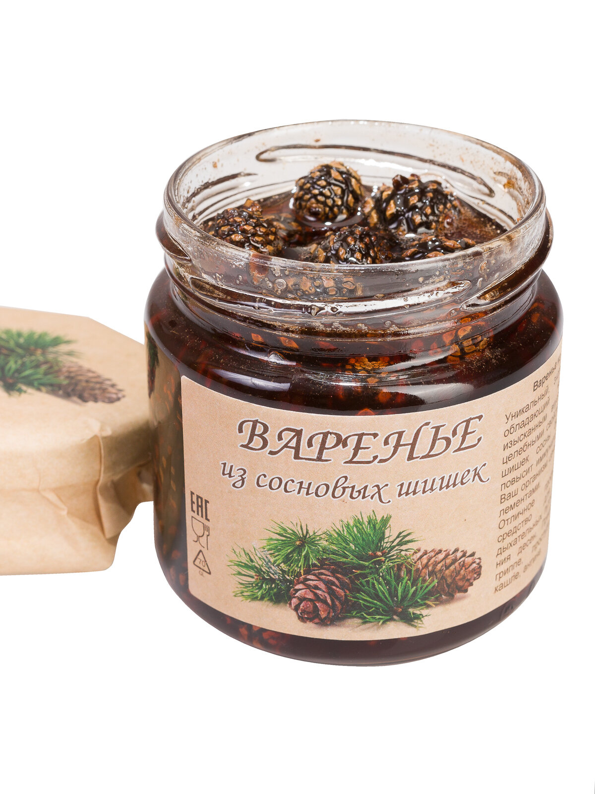 Уникальный, экологически чистый продукт, обладающий неповторимым ароматом, изысканным вкусом и ярко выраженными целебными свойствами. Варенье из молодых шишек сосны быстро восстановит силы, повысит иммунитет и пополнит Ваш организм ценными микроэлементами. Отличное профилактическое средство для очищения дыхательных путей и укрепление десен. Применяется при гриппе, простуде, бронхите, кашле, ангине.