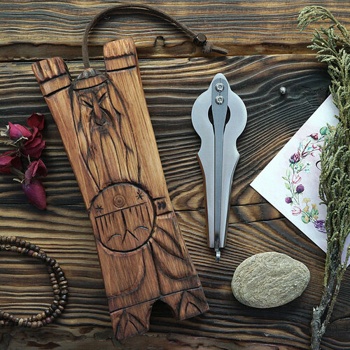 Деревянный чехол Шаман имеет изображение Старца с шаманским бубном. Этот массивный футляр из алтайского кедра надежно защитит ваш варган от возможных повреждений, и сделает подарок более весомым.