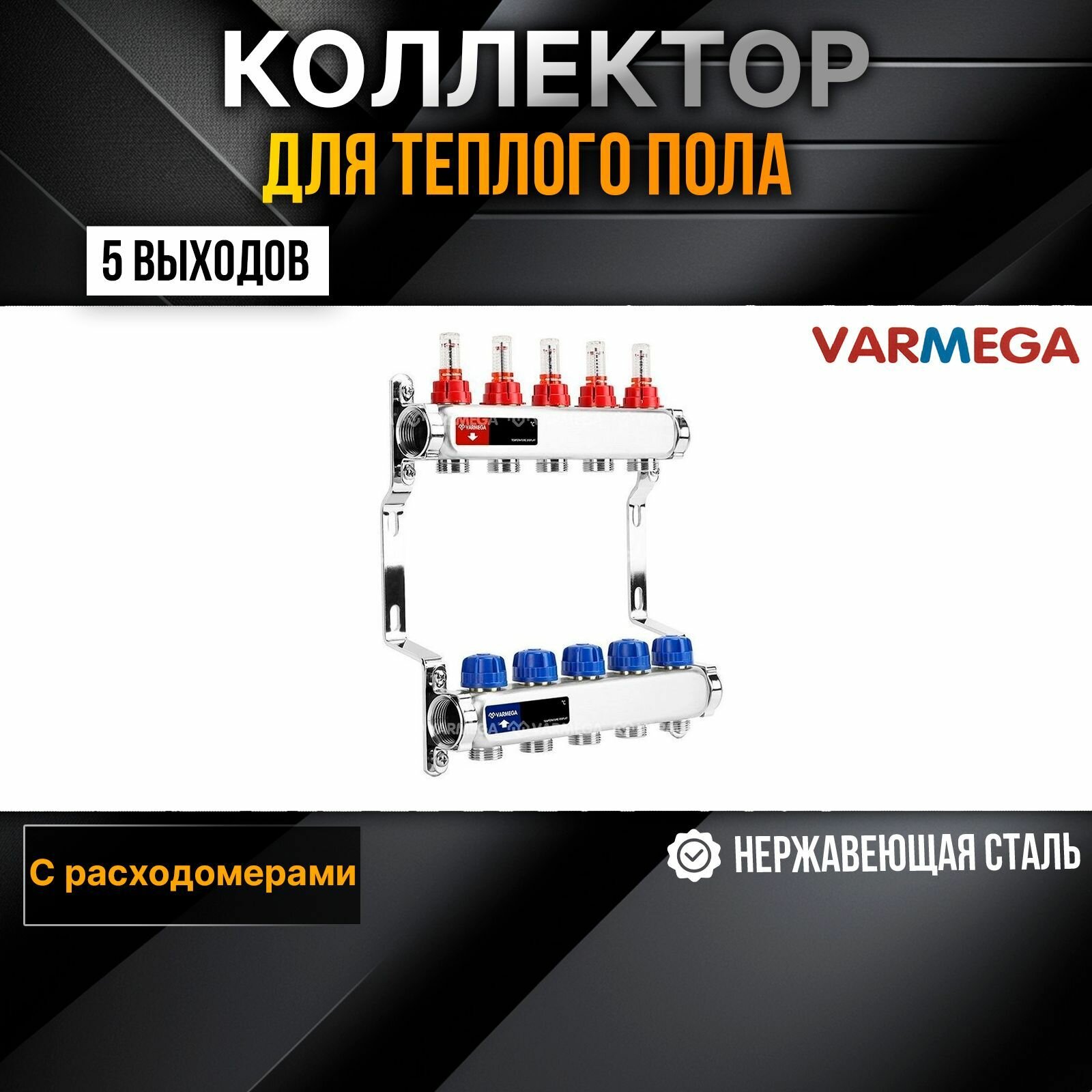 VARMEGA Коллектор из нержавеющей стали с расходомерами 5 выходов / контуров / отводов VM15105: сравнение цен, характеристики, фото, актуальное наличие и цены.