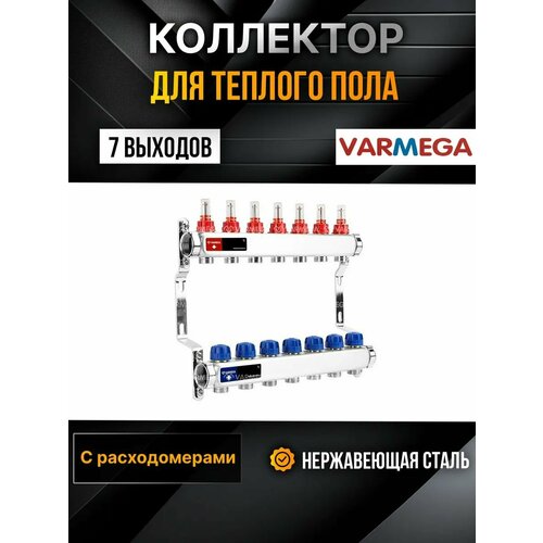VARMEGA Коллектор из нержавеющей стали с расходомерами 7 выходов / контуров / отводов VM15107: сравнение цен, характеристики, фото, актуальное наличие и цены.