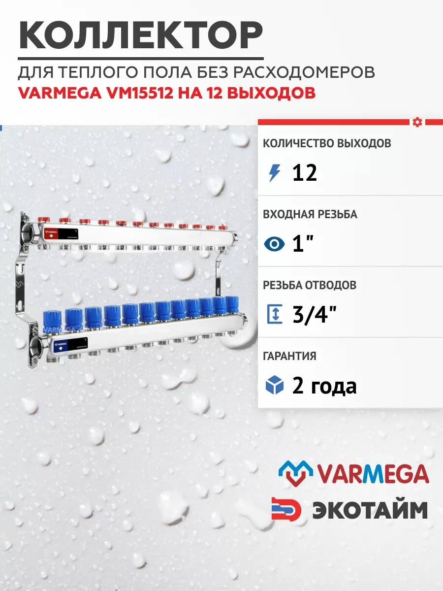 VARMEGA Коллектор из нержавеющей стали с регулирующими клапанами 12 выходов / контуров / отводов VM15512: сравнение цен, характеристики, фото, актуальное наличие и цены.