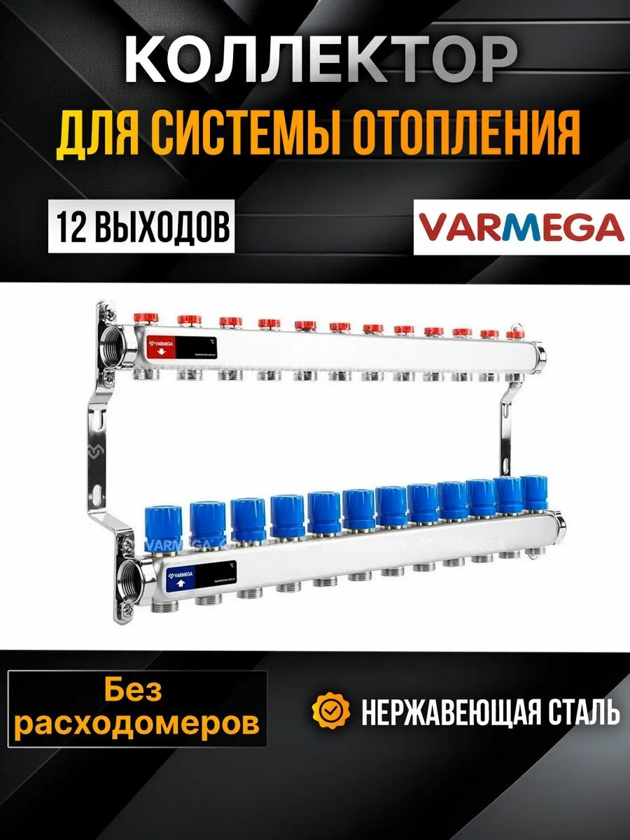 VARMEGA Коллектор из нержавеющей стали с регулирующими клапанами 12 выходов / контуров / отводов VM15512: сравнение цен, характеристики, фото, актуальное наличие и цены.