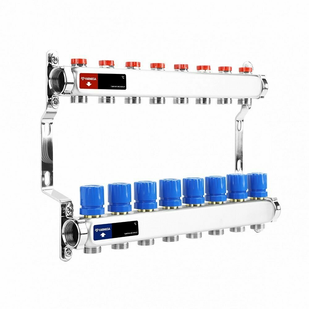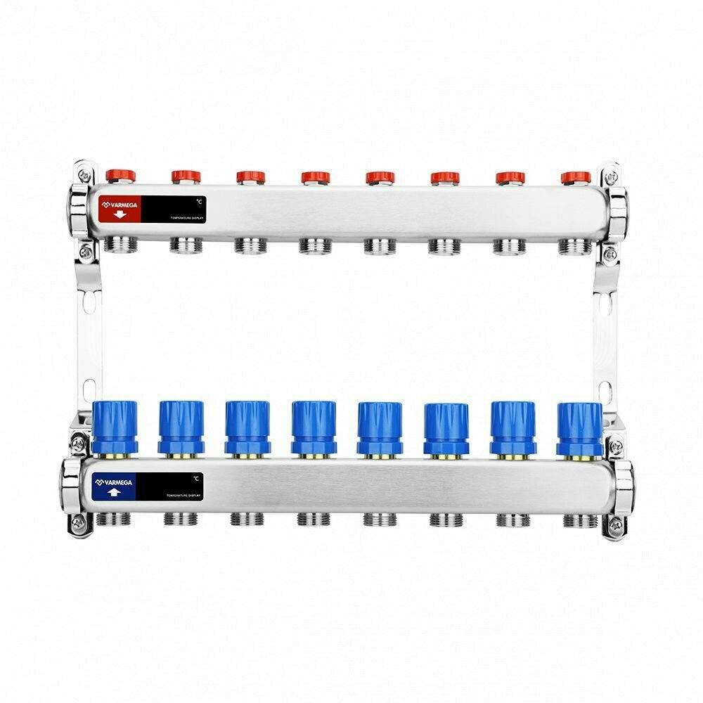 Купить VARMEGA Коллектор из нержавеющей стали с регулирующими клапанами 8 выходов / контуров / отводов VM15508 с доставкой по всей России.
