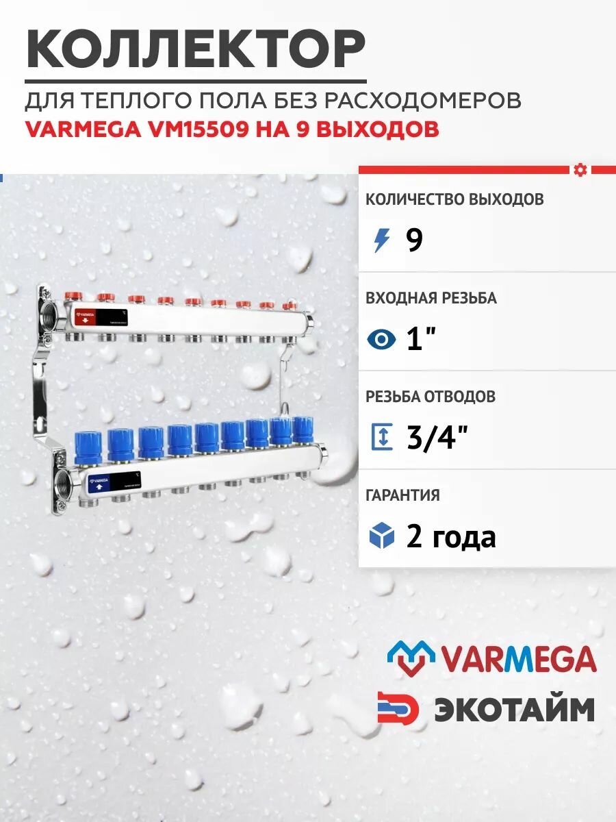 VARMEGA Коллектор из нержавеющей стали с регулирующими клапанами 9 выходов / контуров / отводов VM15509: сравнение цен, характеристики, фото, актуальное наличие и цены.