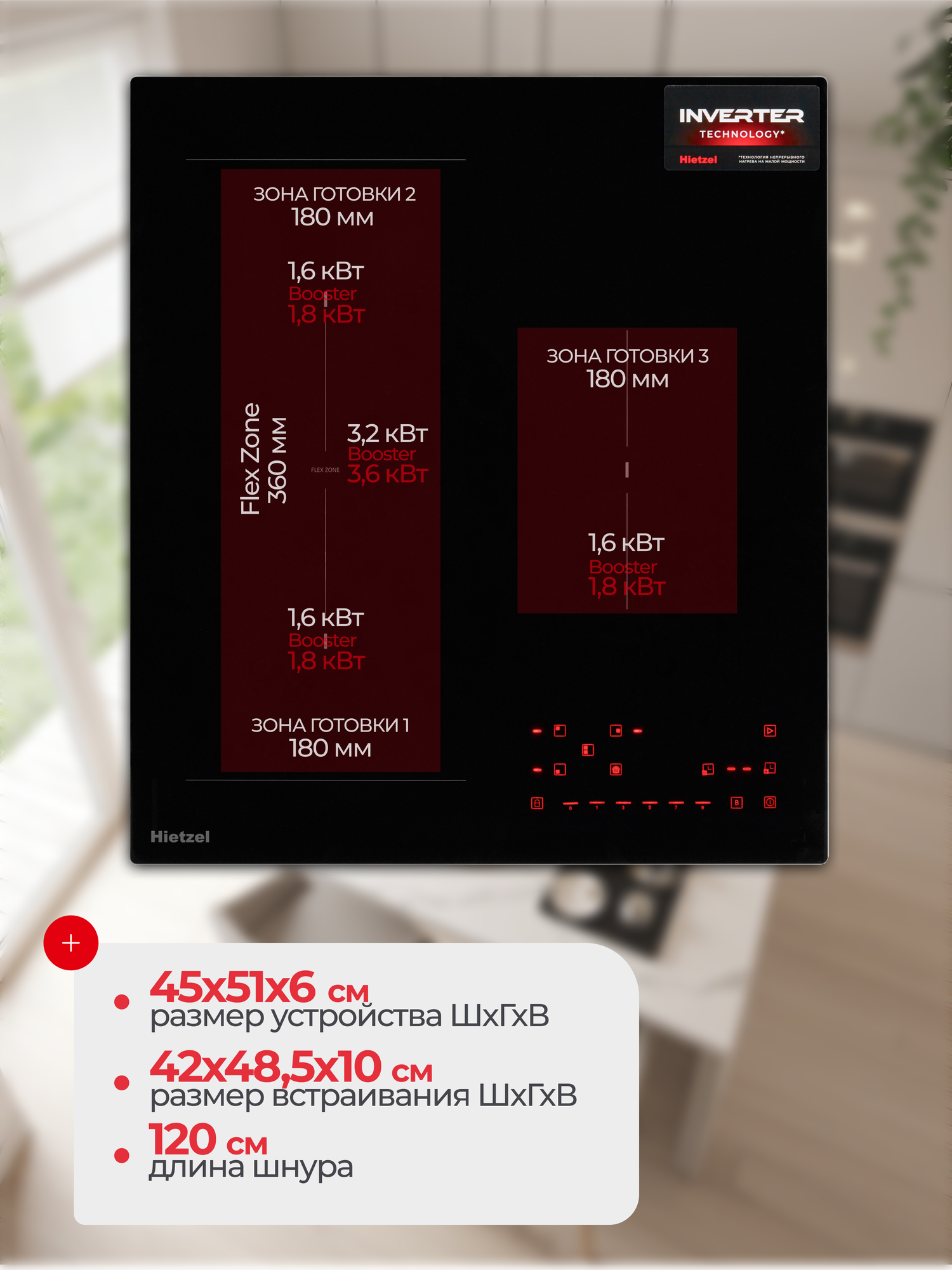 Hietzel HIB 314 CSI BL — это не просто варочная панель, а надежный кухонный помощник с гибкими возможностями, интеллектуальными функциями и мощной производительностью. Благодаря компактным размерам, продуманной конструкции и широкому функционалу, эта модель идеально подойдёт как для активных кулинаров, так и для тех, кто ценит комфорт и безопасность на кухне.