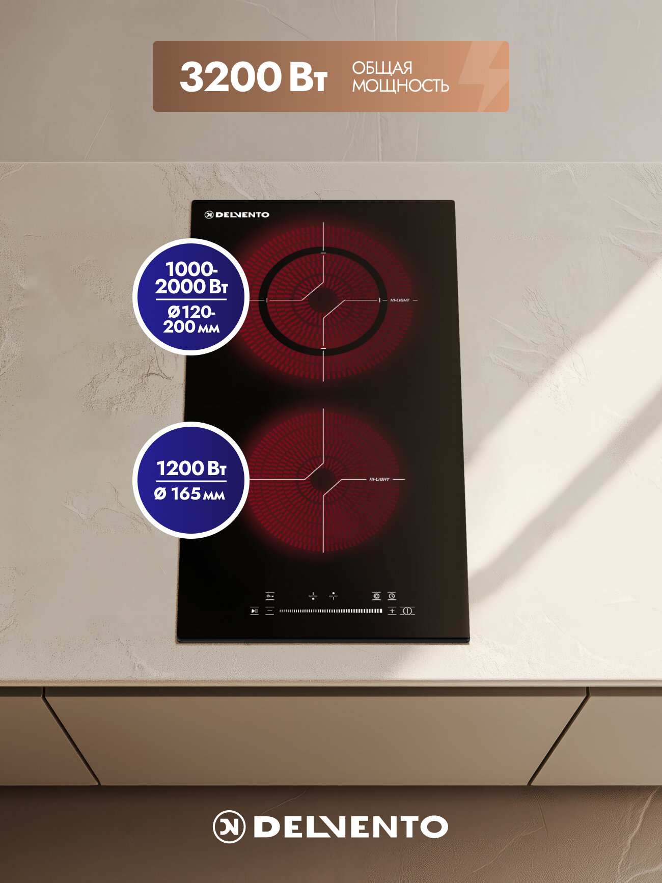 Варочная панель электрическая DELVENTO V30D28S120, 9 уровней мощности, черного цвета: сравнение цен, характеристики, фото, актуальное наличие и цены.