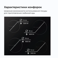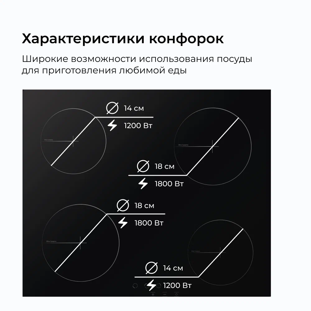 | Размеры конфорок | 140 мм, 140 мм, 180 мм, 180 мм |