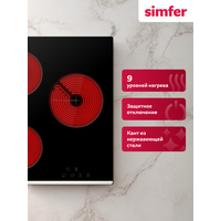 Варочная панель электрическая Simfer 45см, 3 конфорки, 9 уровней, автоотключение, блокировка, 5 ЛЕТ гарантия, турция: сравнение цен, характеристики, фото, актуальное наличие и цены.