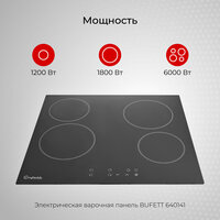 Встраиваемая электрическая варочная панель BUFETT 640141, 4 конфорки, 6000 Вт — это удобное, функциональное и безопасное решение для современной кухни.