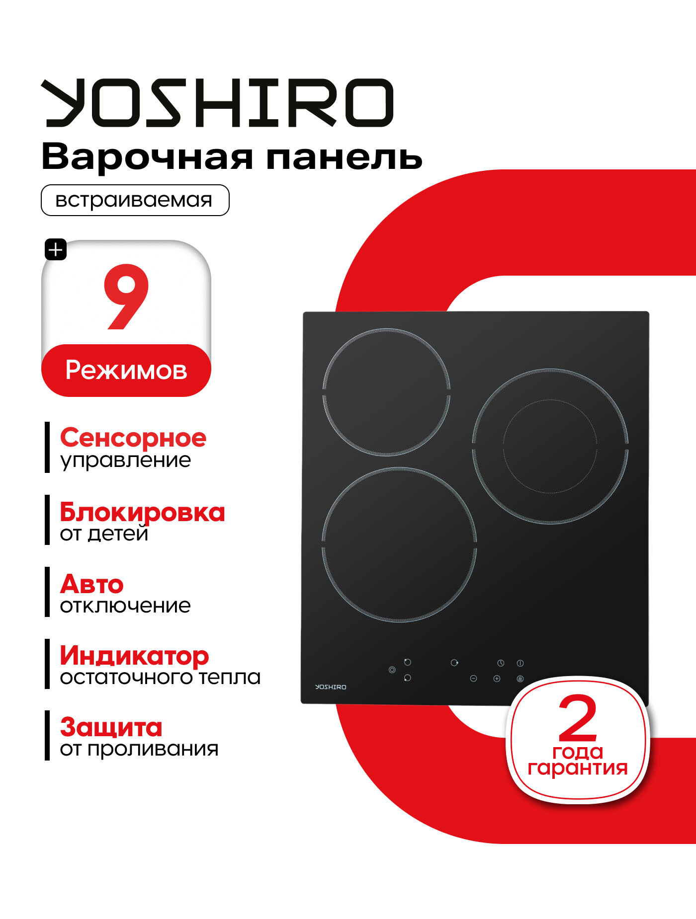 Варочная панель YOSHIRO YBH-C45B31, 3 конфорки, электрическая, сенсорное управление: сравнение цен, характеристики, фото, актуальное наличие и цены.