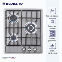 Купить Газовая варочная поверхность Delvento V45V35M001, 3 конфорки, WOK, жиклеры, чугунные решетки с доставкой по всей России.