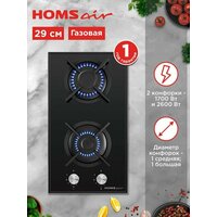 Купить Варочная панель газовая HOMSair HGG321BK черная, встраиваемая, 2 конфорки ALBEK, 29 см с доставкой по всей России.