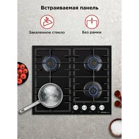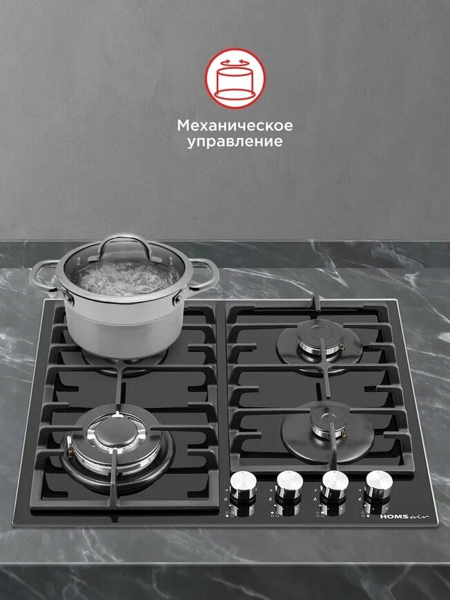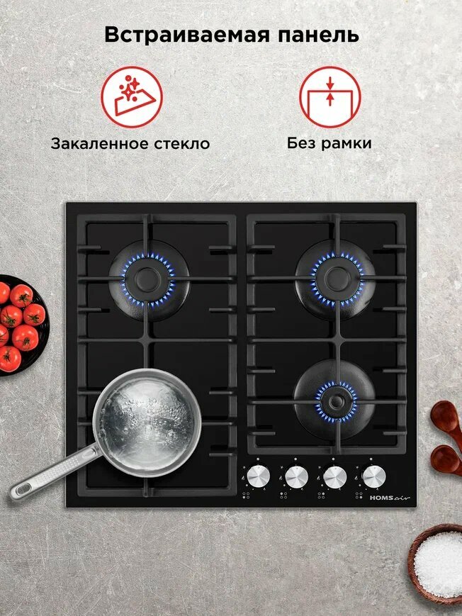 Варочная панель газовая HOMSair HGG646BK черная, встраиваемая, 4 конфорки, 60 см: сравнение цен, характеристики, фото, актуальное наличие и цены.