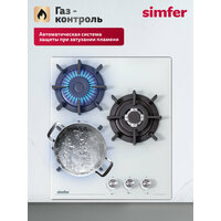 Варочная панель газовая Simfer 45см,3 конфорки, газ-контроль, автоподжиг, WOK-конфорка, чугунные решетки, 5 ЛЕТ ГАРАНТИЯ