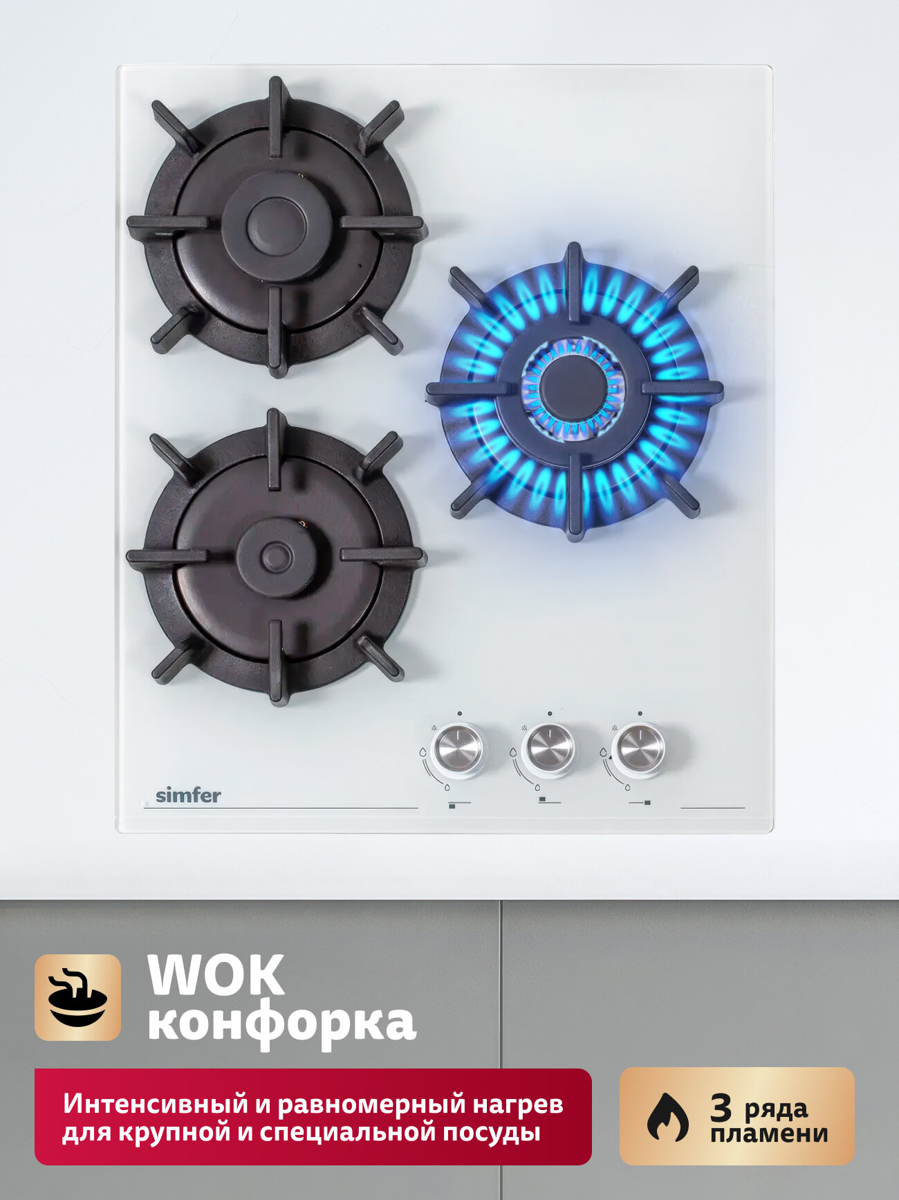 Варочная панель газовая Simfer 45см,3 конфорки, газ-контроль, автоподжиг, WOK-конфорка, чугунные решетки, 5 ЛЕТ ГАРАНТИЯ: сравнение цен, характеристики, фото, актуальное наличие и цены.