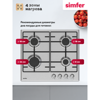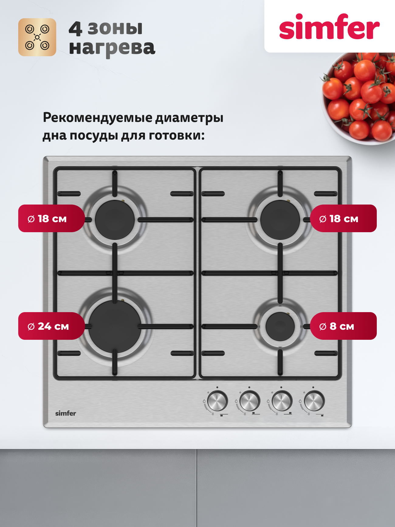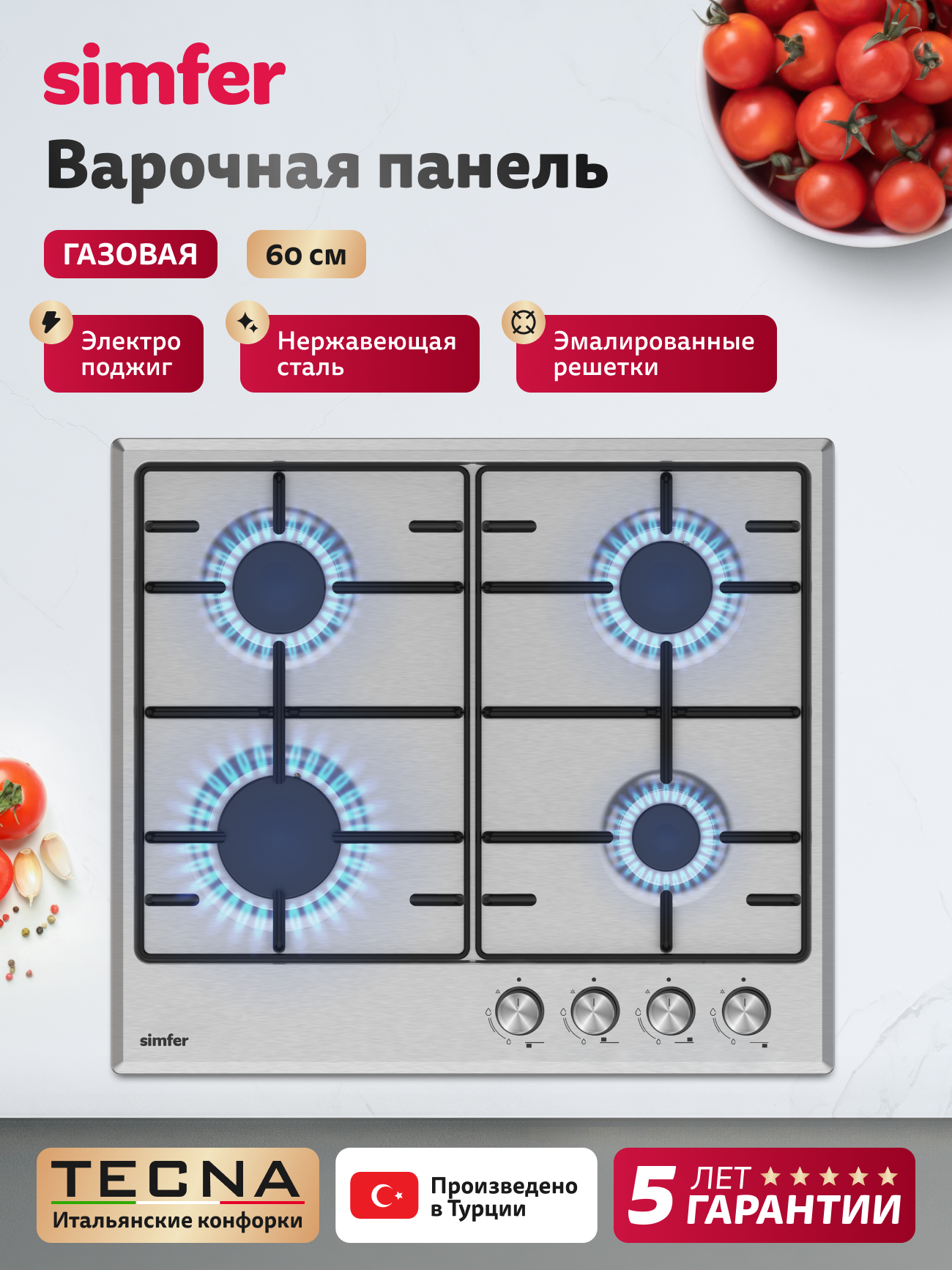 Варочная панель газовая Simfer, 60см, электроподжиг, эмалированные решётки, нержавеющая сталь, 5 ЛЕТ гарантия, турция: сравнение цен, характеристики, фото, актуальное наличие и цены.