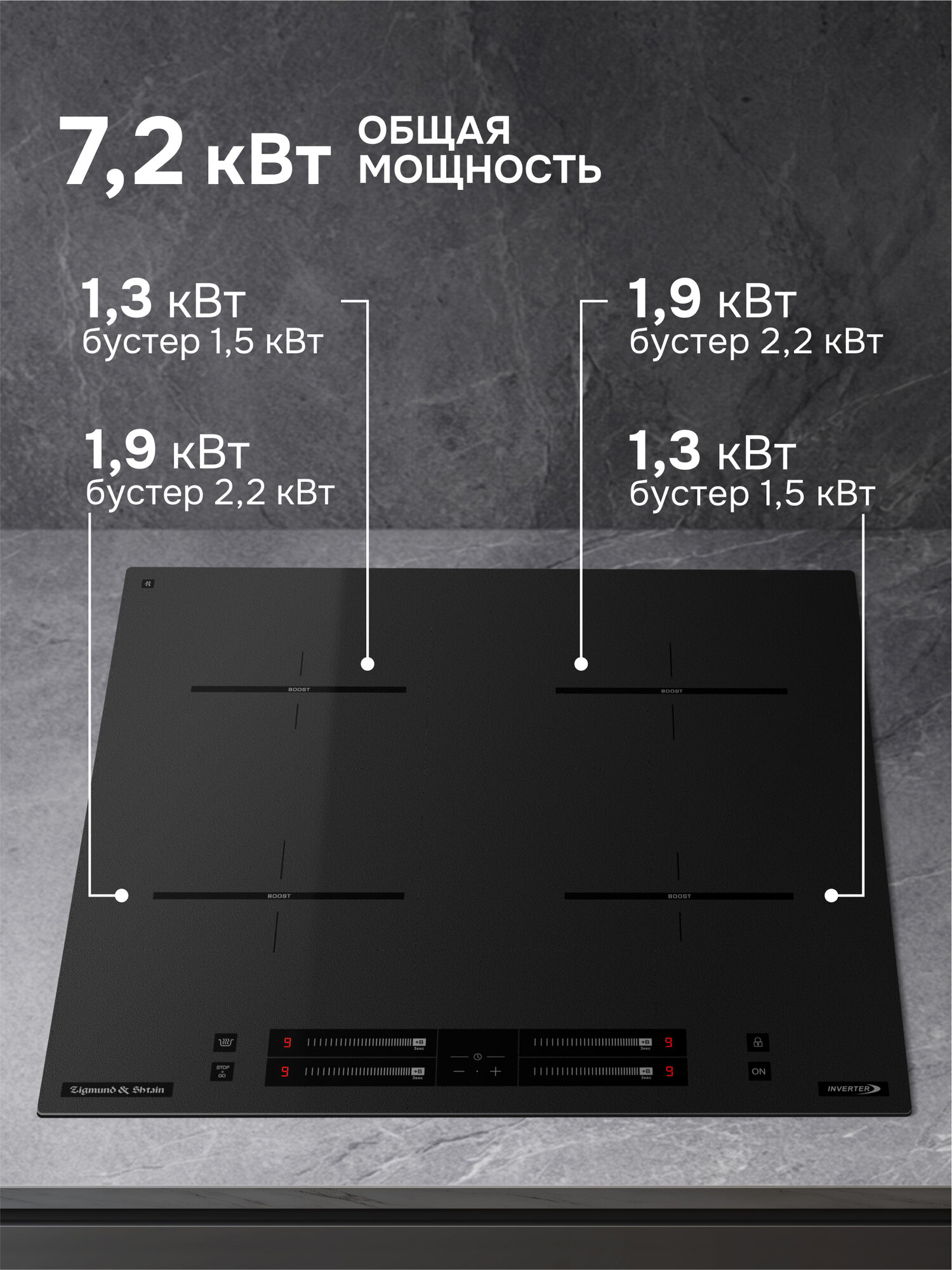 Купить Варочная панель индукционная Zigmund & Shtain CI 23.6 B, стеклокерамика, 7200 Вт, черный с доставкой по всей России.