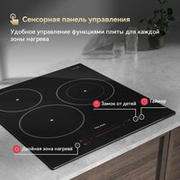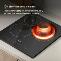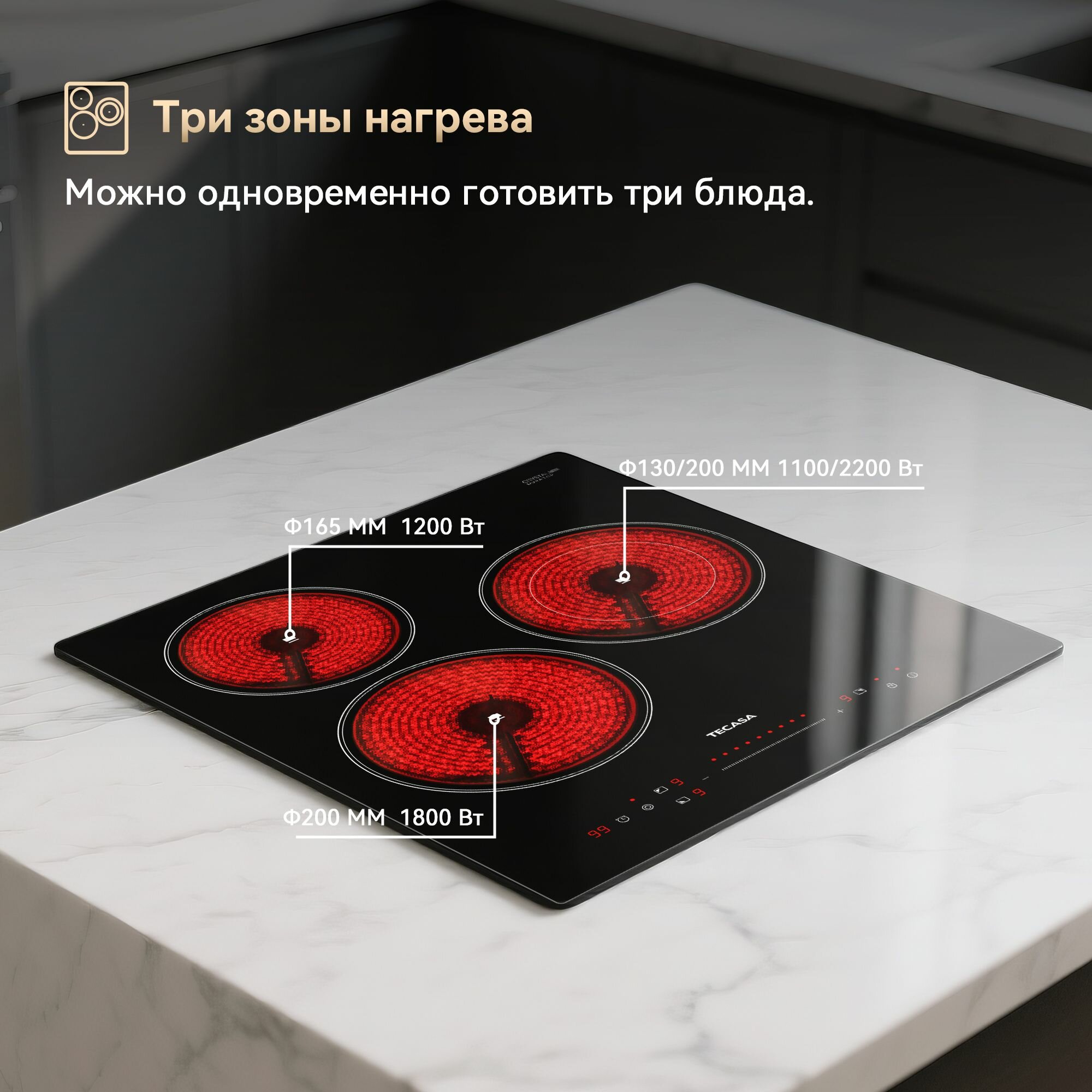 Купить Варочная панель Tecasa TCH45DSB, Мощность 5200 Вт, Таймер, Слайдерное управление, Двойная зона нагрева, 3 конфорки, 9 уровней мощностей с доставкой по всей России.