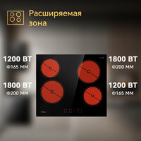 Купить Варочная панель Tecasa TCH59BB, Сенсорное управление, Мощность 6000 Вт, Таймер, функция Boost, 4 конфорки, 9 уровней мощностей с доставкой по всей России.