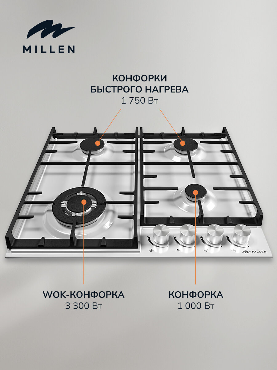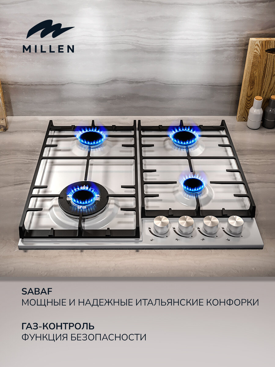 Варочная панель встраиваемая, газовая MILLEN MGH 602 WH, белый, ширина 60 см, 4 конфорки, материал поверхности: эмаль, материал решёток: чугун, электроподжиг, газ-контроль: сравнение цен, характеристики, фото, актуальное наличие и цены.