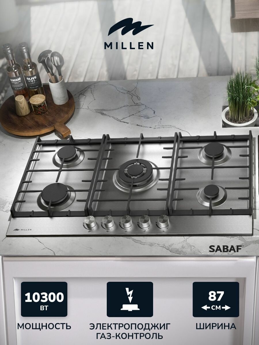 Варочная панель встраиваемая, газовая MILLEN MGH 901 IX, серый металлик: сравнение цен, характеристики, фото, актуальное наличие и цены.