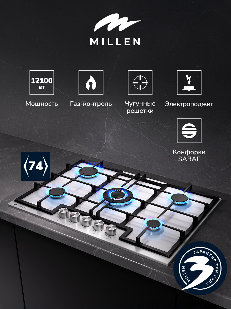 Варочная панель встраиваемая, газовая MILLEN MGHD 7501 WH, 5 конфорок, материал поверхности: эмаль, электроподжиг, газ-контроль.: сравнение цен, характеристики, фото, актуальное наличие и цены.