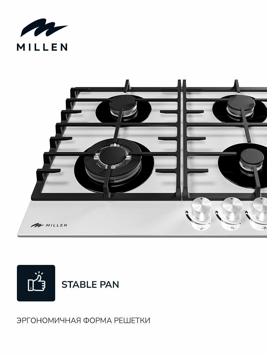 Купить Варочная панель встраиваемая, газовая MILLEN MGHG 601 WH, белый с доставкой по всей России.