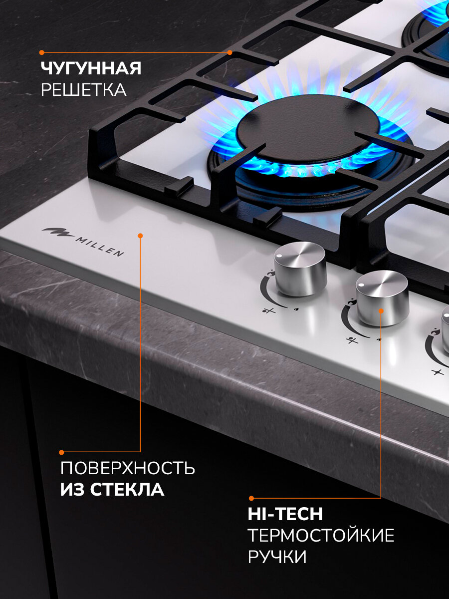 Купить Варочная панель встраиваемая, газовая MILLEN MGHG 701 WH, белый, ширина 70 см, 5 конфорок, электроподжиг, газ-контроль. с доставкой по всей России. Варочная панель встраиваемая, газовая MILLEN MGHG 701 WH, белый, ширина 70 см, 5 конфорок, электроподжиг, газ-контроль.: сравнение цен, характеристики, фото, актуальное наличие и цены.