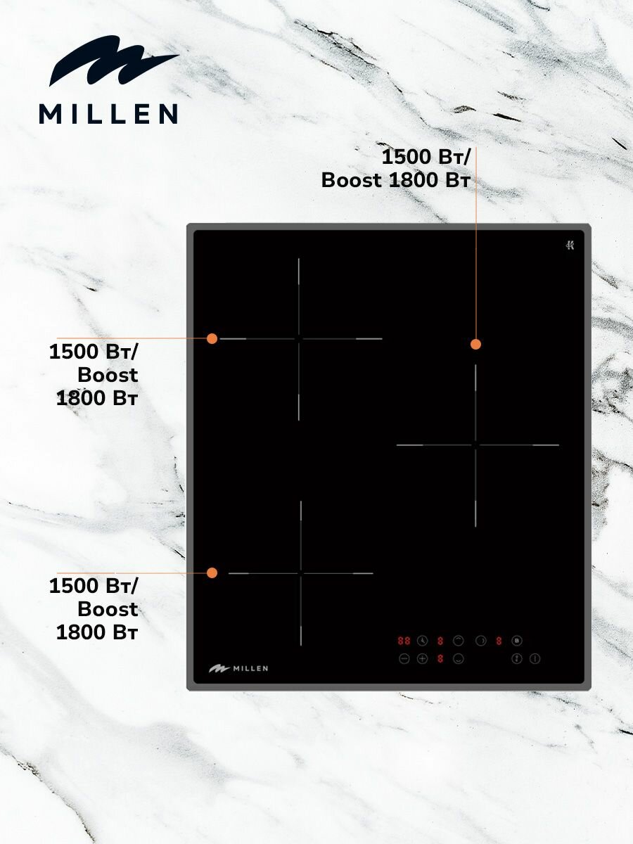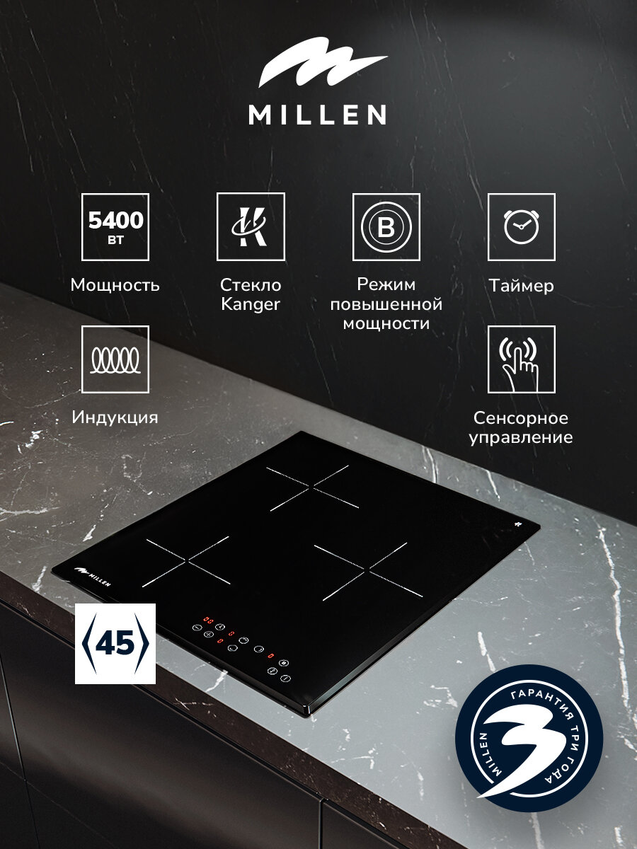 Купить Варочная панель встраиваемая, индукционная MILLEN MIH 451 BL, черный с доставкой по всей России.