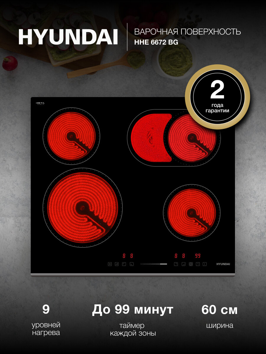 Купить Электрическая варочная панель Hyundai HHE 6672 BG, Hi-Light, черный с доставкой по всей России. Электрическая варочная панель Hyundai HHE 6672 BG, Hi-Light, черный: сравнение цен, характеристики, фото, актуальное наличие и цены.