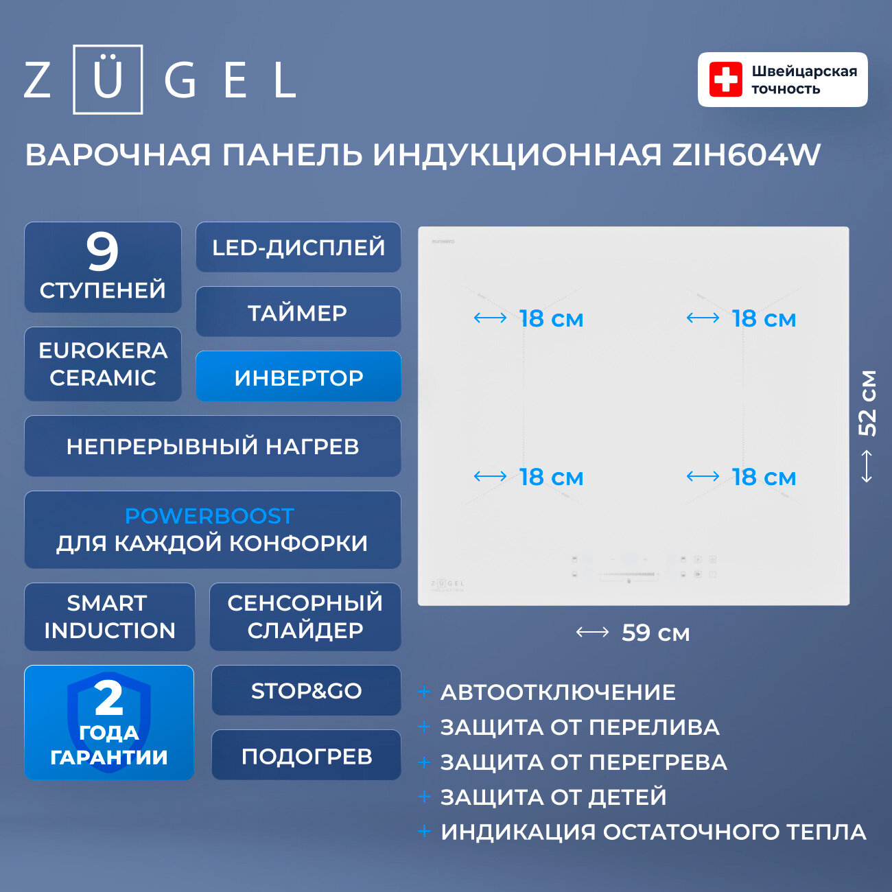 Купить Электрическая варочная панель Zugel ZIH604W с доставкой по всей России.
