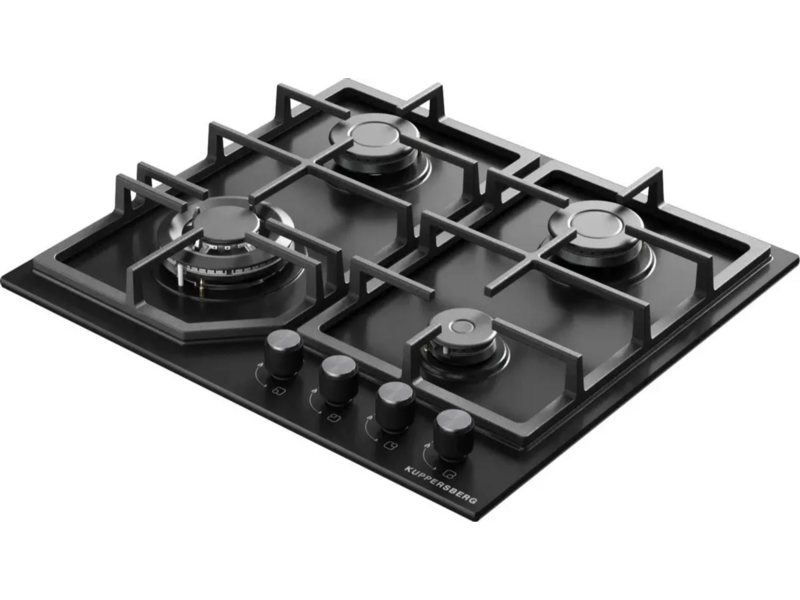 Варочная поверхность Kuppersberg варочная поверхность Kuppersberg/ варочная поверхность Kuppersberg, газовая, High-Tech, 61 см, автоматический электроподжиг, газ-контроль, механическое управление, конфорки REMAY, цвет черный, цвет фурнитуры черный/нержаве