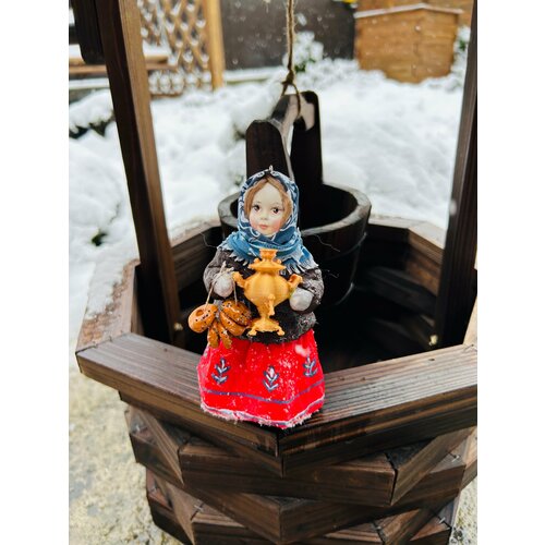 Ватная елочная игрушка "Девушка с самоваром и баранками" станет отличным подарком для ваших близких и друзей. Она будет радовать глаз и напоминать о приятных моментах, проведенных вместе.