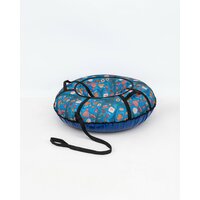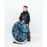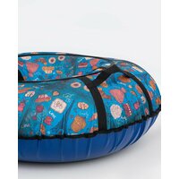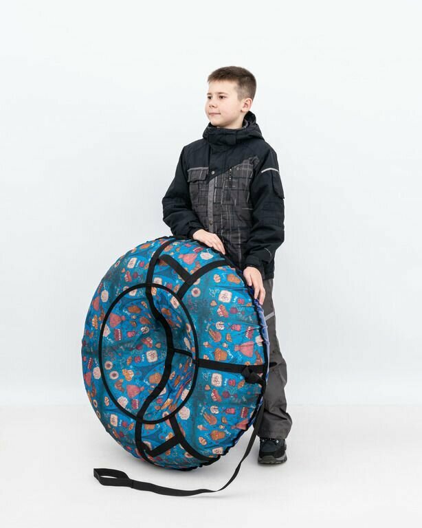 Тюбинг (ватрушка для катания) имеет две ручки, за которые удобно держаться при спуске, а также трос для подъема тюбинга на горку. Трос и ручки с усилением. Верх тюбинга сделан из водонепроницаемой прочной ткани Oxford 600 D, а низ из ПВХ 600-650 гр. высокой прочности. ПВХ отлично скользит, устойчив к влаге и морозу. Внутрь тюбинга-ватрушки вставляется камера, которая идет в комплекте и чехол закрывается молнией. Вес тюбинга в сборе 1,9 кг, его сможет катать по горке ребенок любого возраста. Отлично подойдет детям возраста от 0 до 7 лет. Камера по размерам значительно меньше чехла и вам может показаться, что камера не подходит, но нужно просто накачать сильнее, до заполнения чехла камерой по внешнему контуру. Накачать камеру можно автомобильным насосом. Комплектация: чехол; инструкция; камера; буксировочный ремень