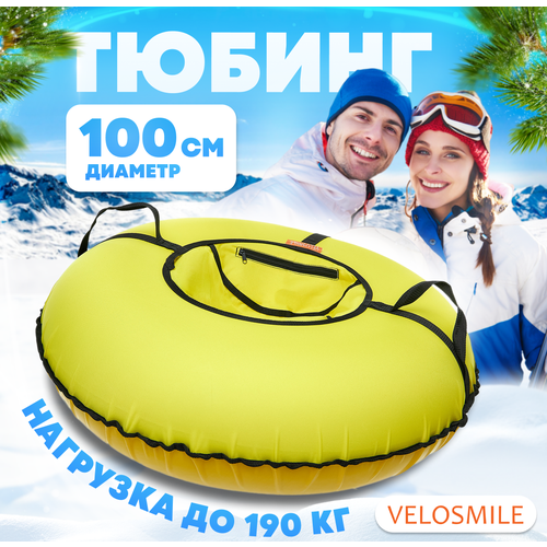 Ватрушка-Тюбинг для катания зимняя VeloSmile Стандарт 100 см, Желтый (с молнией и российской камерой): сравнение цен, характеристики, фото, актуальное наличие и цены.