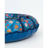 Тюбинг (ватрушка для катания) имеет 4 мягкие ручки, за которые удобно держаться вдвоем при спуске, а также удобный трос для подъема тюбинга на горку. Трос и ручки усилены. Санки-ватрушка имеет в комплекте чехол и камеру. Верх тюбинга сделан из водонепроницаемой прочной ткани Oxford 600 D, а низ из ПВХ высокой прочности. ПВХ отлично скользит, устойчив к влаге и морозу. Внутрь тюбинга-ватрушки вставляется камера, которая идет в комплекте и чехол закрывается молнией. Вес тюбинга в сборе 3,2 кг, его легко переносить и катать по горке. Перед использованием рекомендуем ознакомиться с инструкцией и придерживаться её при надувании тюбинга. Камера по размерам значительно меньше чехла и вам может показаться, что камера не подходит, но нужно просто накачать сильнее, до заполнения чехла камерой по внешнему контуру. Накачать камеру можно автомобильным насосом. Комплектация: чехол; инструкция; камера; буксировочный ремень