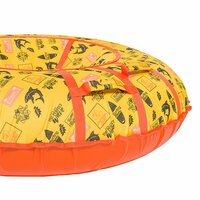 Тюбинг (ватрушка для катания) имеет 4 мягкие ручки, за которые удобно держаться вдвоем при спуске, а также удобный трос для подъема тюбинга на горку. Трос и ручки усилены. Санки-ватрушка имеет в комплекте чехол и камеру. Верх тюбинга сделан из водонепроницаемой прочной ткани Oxford 600 D, а низ из ПВХ высокой прочности. ПВХ отлично скользит, устойчив к влаге и морозу. Внутрь тюбинга-ватрушки вставляется камера, которая идет в комплекте и чехол закрывается молнией. Вес тюбинга в сборе 3,2 кг, его легко переносить и катать по горке.