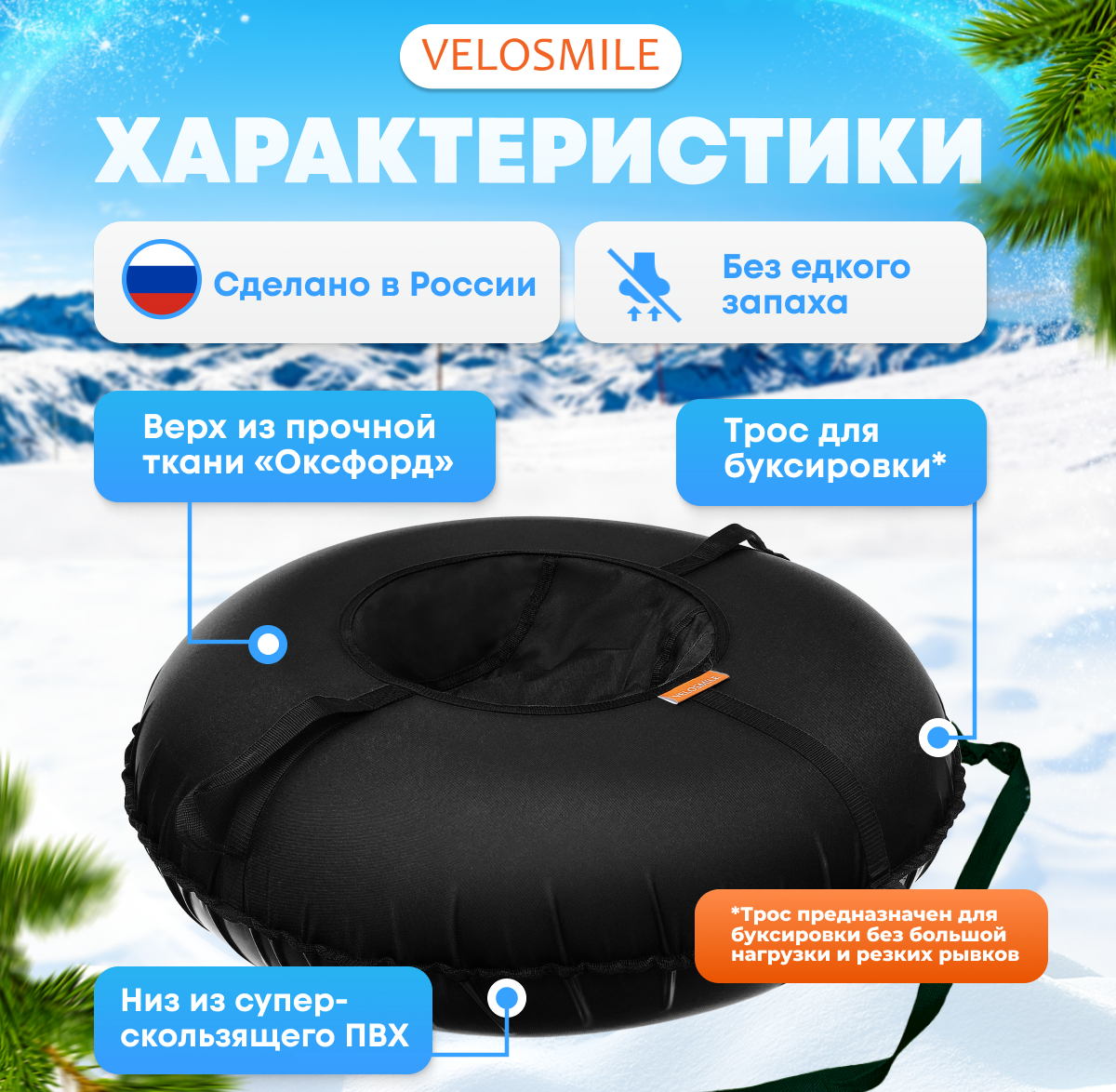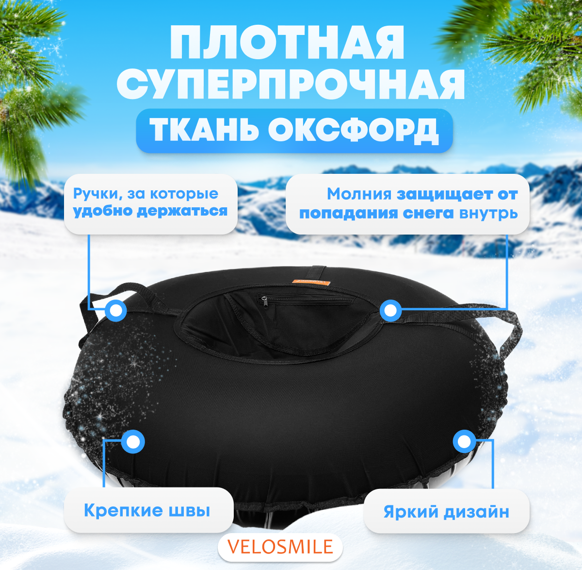 Ватрушка-Тюбинг VeloSmile Стандарт 120 см, Черный (с молнией и российской камерой): сравнение цен, характеристики, фото, актуальное наличие и цены.