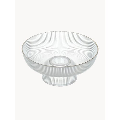 Красивая прозрачная фруктовница может служить сервировочной подставкой для конфет или десертов. Удобный сервировочный элемент украсит стол во время праздника и в повседневной жизни. Стеклянная подставка особенно будет уместна на новогоднем столе. Это идеальный подарок бабушке или маме на Новый год, 8 марта или День Рождения. Вазу для фруктов с золотой обводкой можно использовать как центральный элемент декора стола во время семейных встреч. Нельзя использовать в СВЧ. Нельзя мыть в посудомоечной машине.