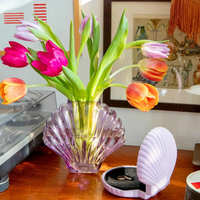 - Стекло легко очищается от загрязнений, что позволяет поддерживать вазу в идеальном состоянии на протяжении долгих лет. - Необычный дизайн в виде морской раковины привлекает внимание и может служить ярким акцентом интерьера. - Ваза подходит для живых цветов и композиций из сухоцветов.
