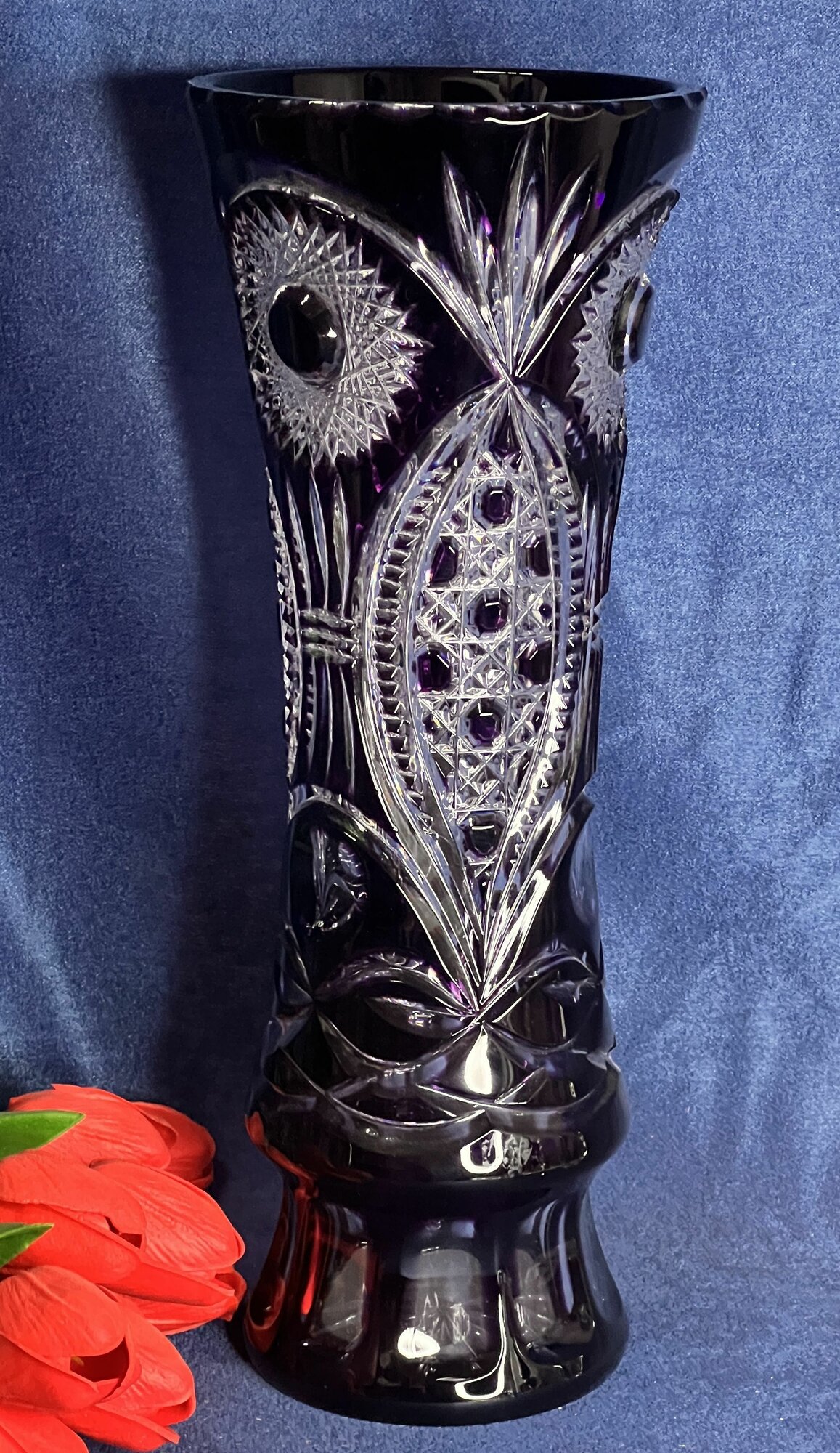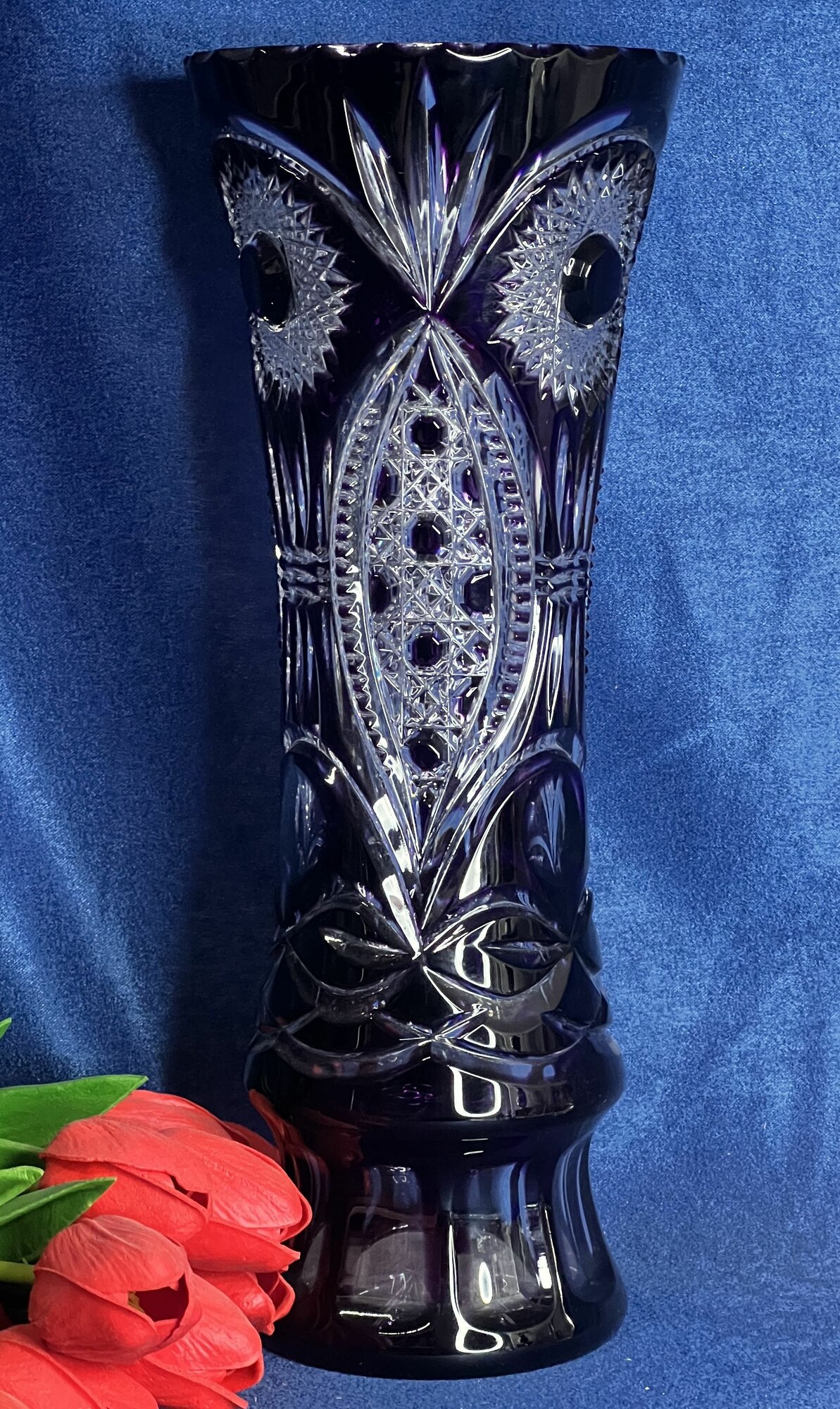 Индивидуальный рисунок и насыщенный цвет делает эту вазу особенной. Изготовление такого изделия - полностью ручная работа, начиная от выдувания формы и заканчивая алмазной огранкой для получения рисунка. Размеры и огранка изделия могут незначительно отличаться от представленного на фотографии.