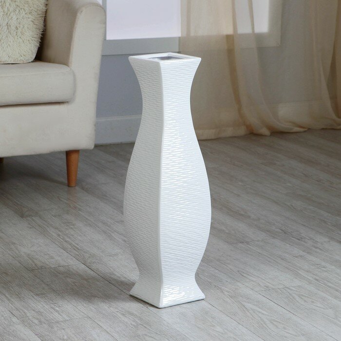 Купить Ваза керамика напольная «Нолвен», листья, напольная, d вн.-9 см, 15×60 см, белый с доставкой по всей России.