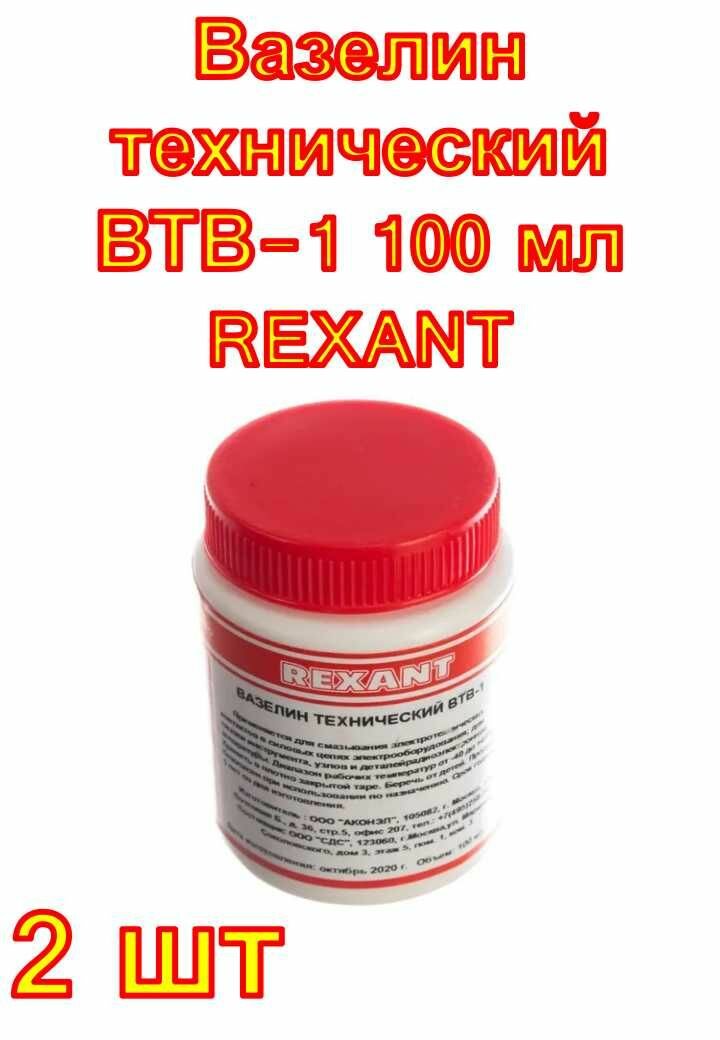 Вазелин технический ВТВ-1 100 мл REXANT используется во многих отраслях - для предотвращения окисления клемм аккумуляторов и наконечников проводов автомобилей, для смазывания контактов в электооборудовании, для смазки деталей в радиотехнике и др. Вазелин обладает высокими защитными и консервационными свойствами.