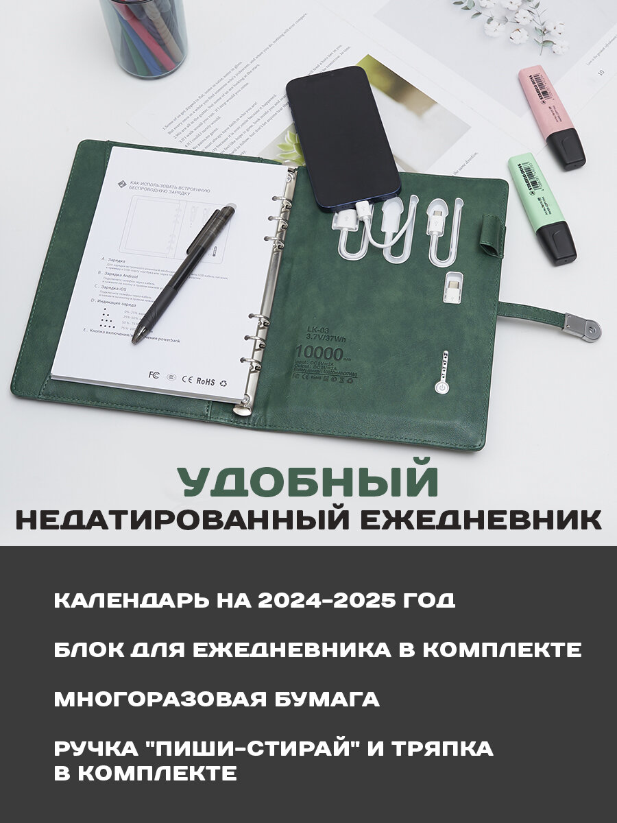 Вечный ежедневник недатированный с беспроводной зарядкой и флешкой 32 ГБ, ручкой пиши стирай Оптимус