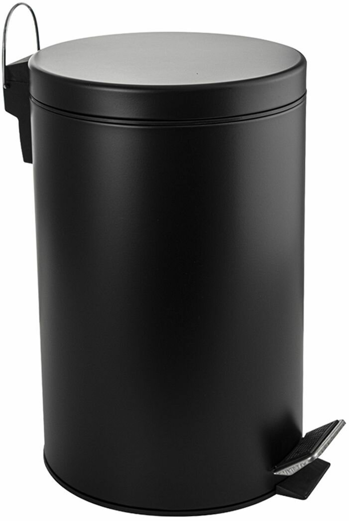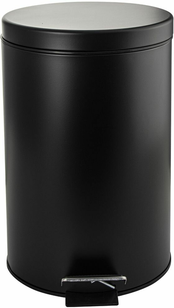Круглое ведро, черного цвета для сбора мусора, с педалью и откидной крышкой, прекрасно подойдет для ванной комнаты, туалета, кухни и офиса. Ведро оснащено пластиковым гигиеническим контейнером с металлической ручкой для переноса и механизмом поднятия крышки, при помощи нажатия на педаль. Объём ведра 20 литров. Отличное решение для утилизации мелкого бытового мусора. Наличие крышки обеспечивает защиту от неприятных запахов и распространения бактерий, а педальная система открывания позволяет не прикасаться к баку руками. Благодаря современному дизайну ведро впишется в интерьер любой кухни и ванной комнаты. Преимущества ведра для мусора с педалью: удобно устанавливается и перемещается на любое место; изготовлено из устойчивой к коррозии нержавеющей стали с покрытием, черного цвета; пользоваться изделием удобно и гигиенично благодаря педали в нижней части корпуса. Нескользящая пластиковая основа ведра предотвращает повреждение пола.