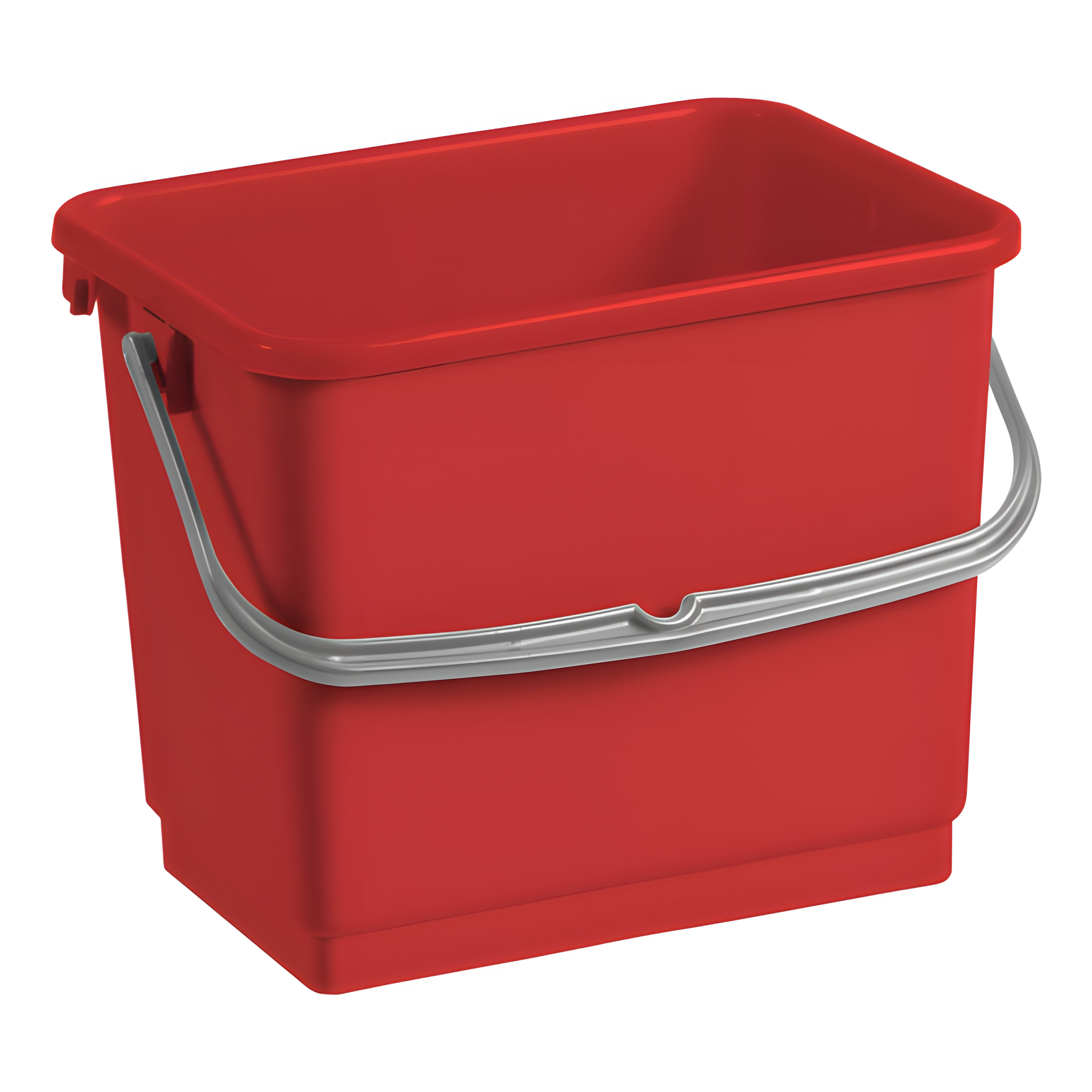 Ручка на ведре обеспечивает удобство при переноске, а яркий красный цвет делает его заметным на любой поверхности.