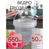 Прозрачное ведро для пищевых продуктов объемом 550 мл с крышкой и ручкой станет незаменимым помощником в хранении и транспортировке различных продуктов. В комплекте 50 штук.