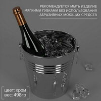 Артикул: 0721-264. Размеры: 22 x 22 x 22 см, Материал: Нержавеющая сталь, Объем: 5000 мл, Вес: 476 гр, Размер упаковки: 22 x 22 x 22 см, Для детей до 3 лет: Нет, Вид упаковки: Пакет, Цвет: Хромированный, Рисунок: Нет, Можно мыть в посудомоечной машине: Да. Если вы хотите подать бутылку любимого напитка в торжественной и элегантной манере, воспользуйтесь ведёрком для льда. Особенности: стильный корпус из нержавеющей стали, удобные ручки-петли, долгий срок службы. Рекомендуется мыть изделие мягкими губками без использования абразивных моющих средств.